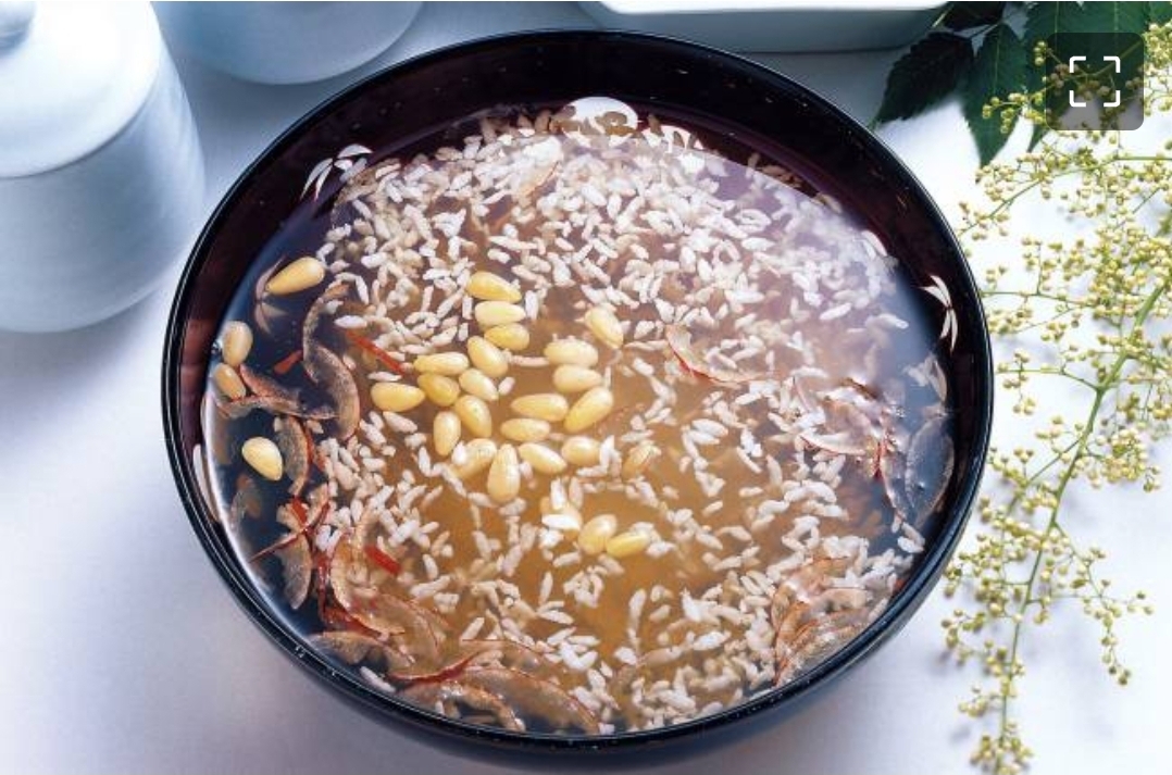 The grains had a uniquely delightful texture — tender yet slightly chewy, like edible paper — and pine nuts floated on top, adding a nutty fragrance to the rich barley malt aroma.