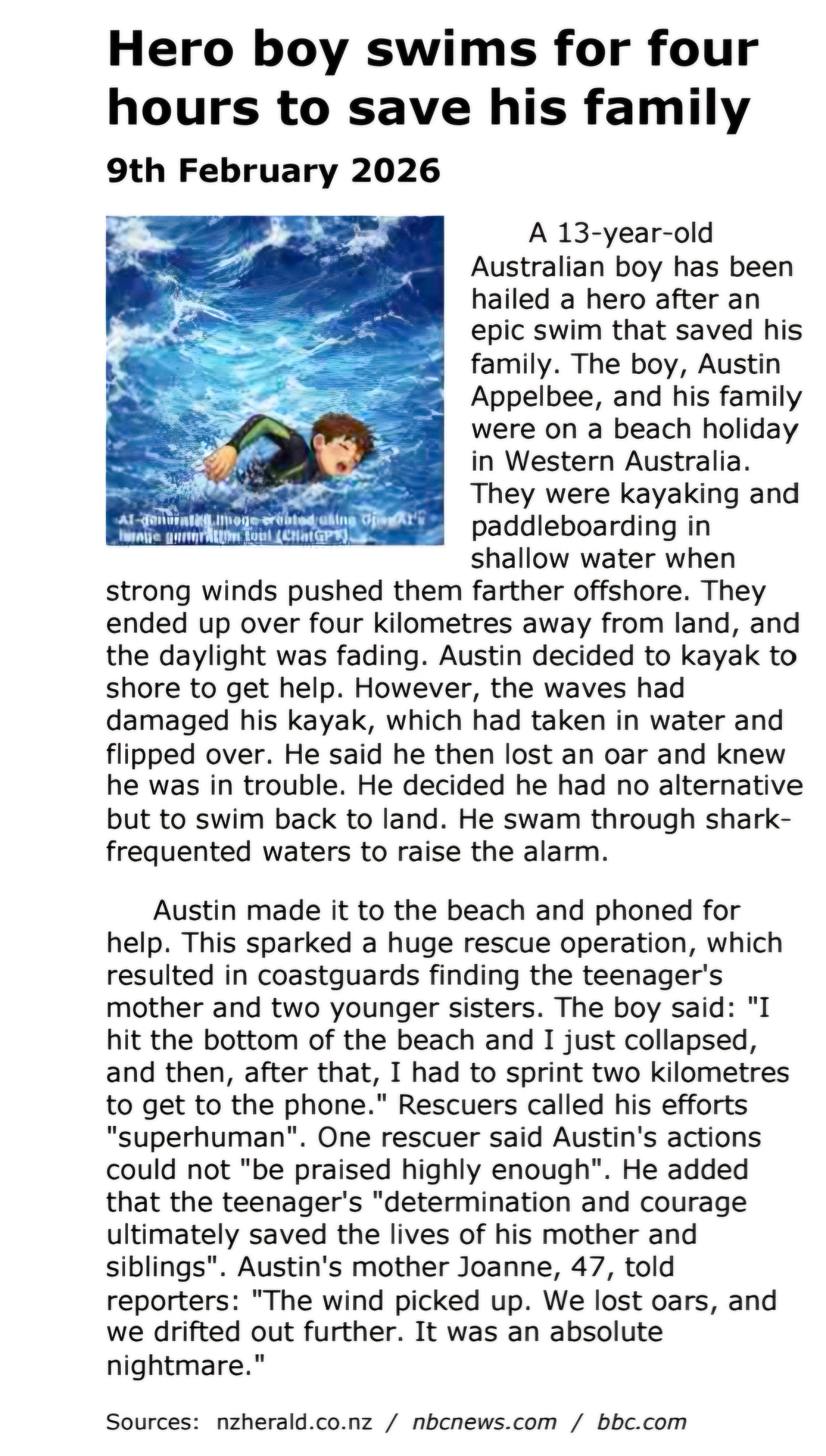A thirteen-year-old boy named Austin Appelbee once faced a life-or-death situation in the ocean.